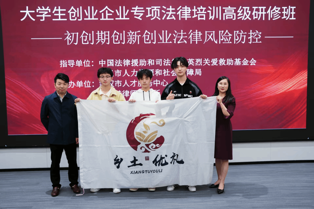 10月18日, 由中国法律援助和司法行政英烈关爱救助基金会、武汉市人力资源和社会保障局联合指导,武汉市人才服务中心举办“大学生创业企业专项法律培训高级研修班”在武汉圆满落幕。我校孵化器入驻团队“乡土优礼”团队与来自武汉大学、华中科技大学等十余所高校的50余名学员共同完成10月17日至18日的封闭式研修。本次课程聚焦初创企业知识产权、劳动用工、股权治理三大痛点,通过“案例复盘+法条拆解+工具演练”三维教学模式,为我校双创学子送上了一份权威、系统、可落地的“法治护航指南”。